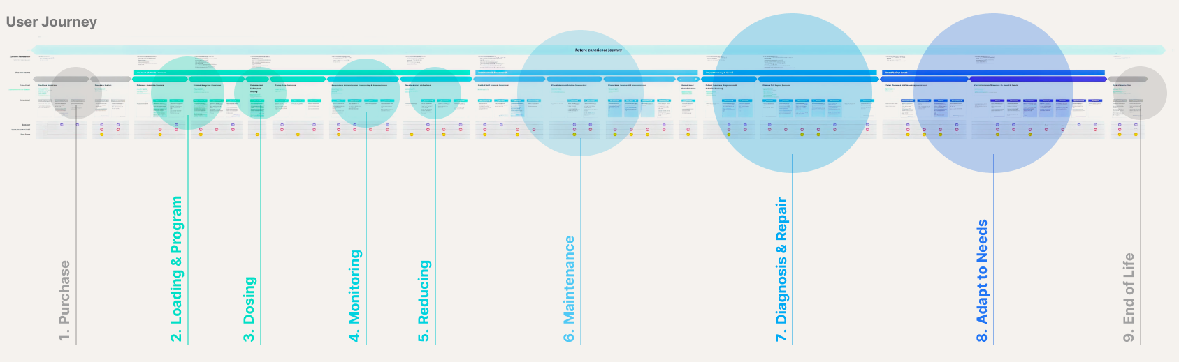 I was part of the full research and analysis phase — mapping the sustainability landscape, reviewing BSH's strategic input, and participating in ideation workshops across all three focus areas. Each workshop produced a cluster of use cases and ideas that I helped synthesise into actionable design directions. The outcomes directly shaped the machine architecture and experience journey that followed.